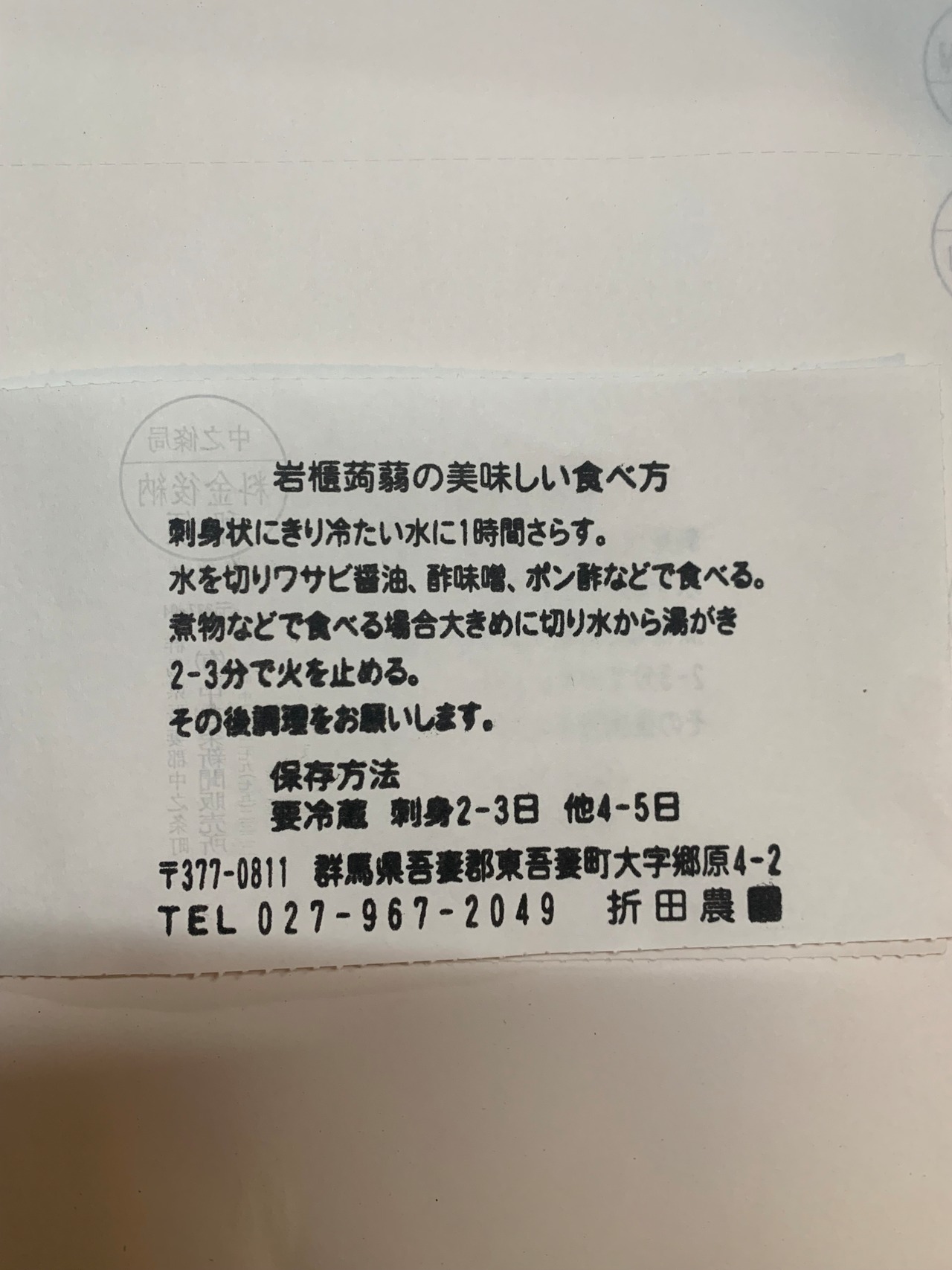 こんにゃく原材料:自家栽培 こんにゃく生玉100% 凝固剤